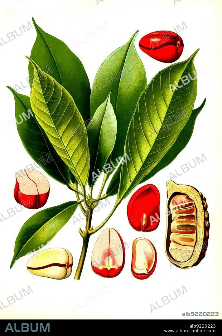 Medicinal plant, kola tree (Cola acuminata), cola nut tree, Historical, digitally restored reproduction from an 18th century original.