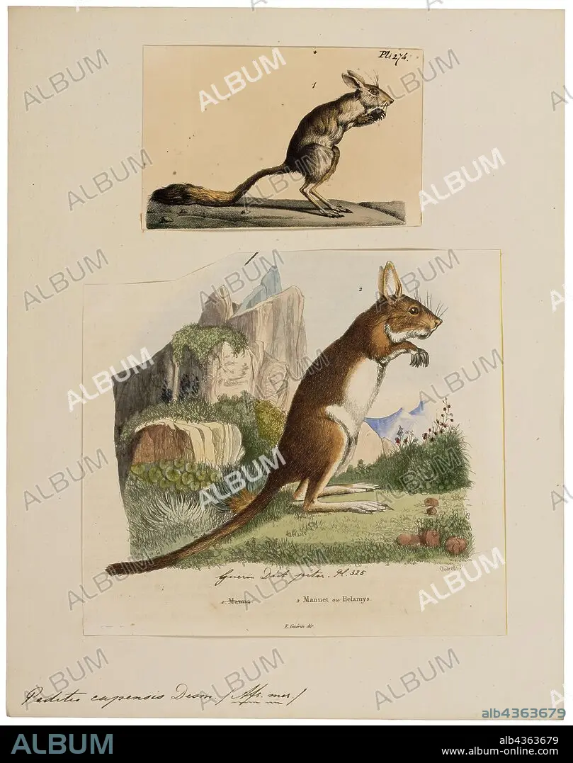 Pedetes capensis, Print, The South African springhare (Pedetes capensis), or springhaas in Afrikaans, is not actually a hare, but a rodent. It is one of two living species in the genus Pedetes, and is native to southern Africa. Formerly, the genus was considered monotypic and the East African springhare (P. surdaster) was included in P. capensis. Though the species look alike at a casual glance, scientific study can easily determine which is which., 1700-1880.